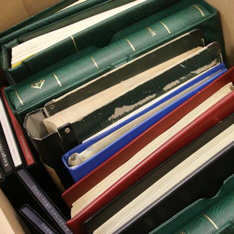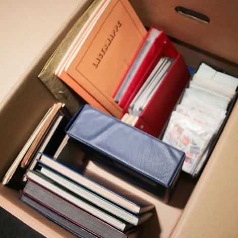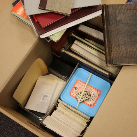 Realisation. Originla lot in a large box with several old collections DK/foreign, christmas sheets etc.