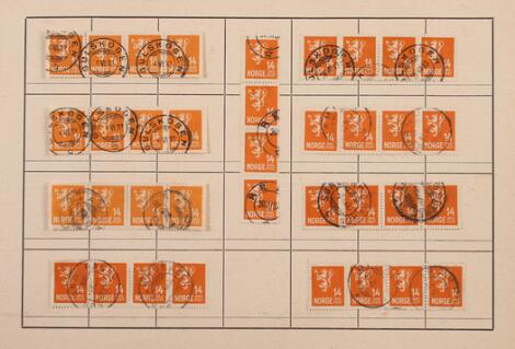 Norway. 1937. Lion, 14 øre, orange. Lot with 1400-1500 used copies