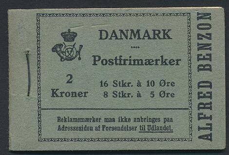 1933. ALFRED BENZON, 2 kr. Komplet hæfte med variant i 10 øre "STREG PÅ K". Sjældent hæfte i flot kvalitet. AFA 16.000+