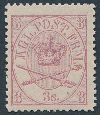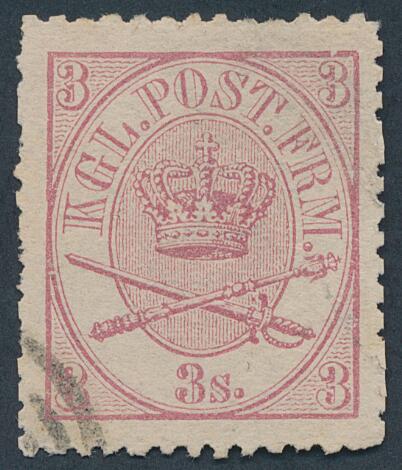 1864. 3 sk. (1870) linietakket 12 1/2. Letstemplet eksemplar. Attest Nielsen