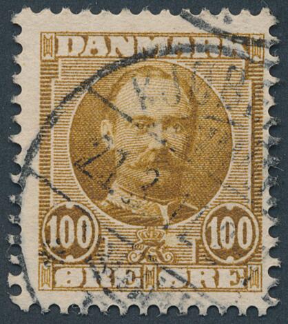 1907. Fr. VIII, 100 øre, gulbrun. Variant "USKRAVERET FELT VED MONOGRAM". Stemplet. AFA 8500. Attest Kaiser