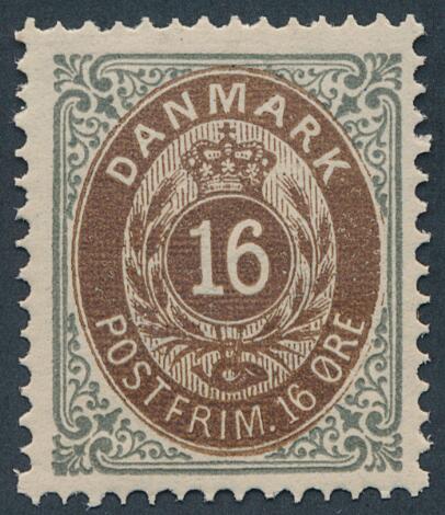 1875. 16 øre, 6.tryk, pos. 96. Perfekt postfrisk mærke. Attest (kopi) Nielsen PRAGTEKSEMPLAR