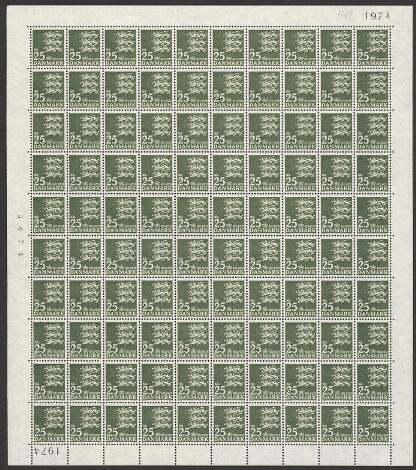 1962. Rigsvåben 25 kr. mørkgrøn. Alm. papir. Perfekt ufoldet helark med marg. nr. 1974. AFA 40000+