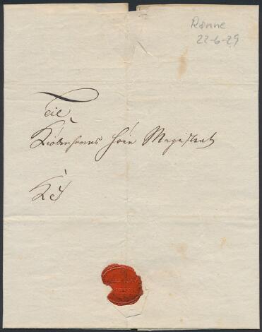1829. BORNHOLM. Tidligt brev fra Rønne 22.6.1829, til København.