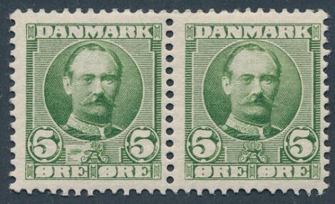 1907. Fr. VIII, 5 øre med variant: uskraveret til venstre for monogram. Fint ubrugt parsykke, let hængslet. AFA: 2500