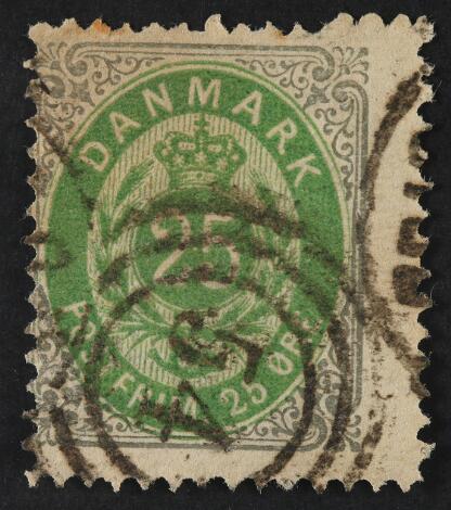 1875. 25 øre, 1.tryk, pos. 18 ISOLERET OMVENDT RAMME. Meget sjældent mærke. AFA 4000. Attest Nielsen