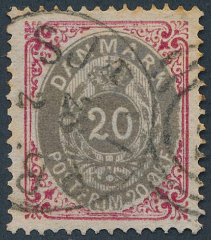 1875. 20 øre, 3a.tryk, pos. A81 ISOLERET OMVENDT RAMME. Smukt eksemplar fra det sjældne 3a.tryk. Ikke prissat i AFA. Attest Nielsen