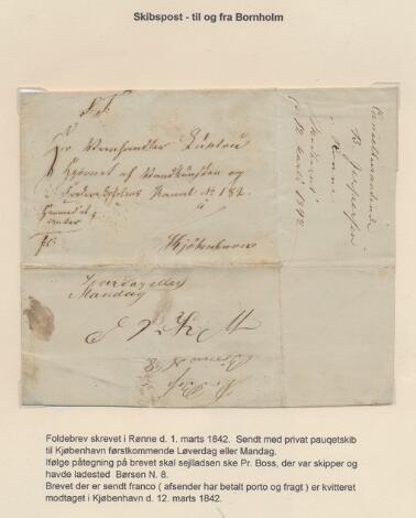 1842. SHIP-cover from Rønne 1 marts 1842 (Bornholm) to Copenhagen.