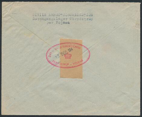 1947. Cover from VOJENS to Copenhagen from "Dansk Militærkontrol "SKYDSTRUP VOJENS 15 DEC 1947".