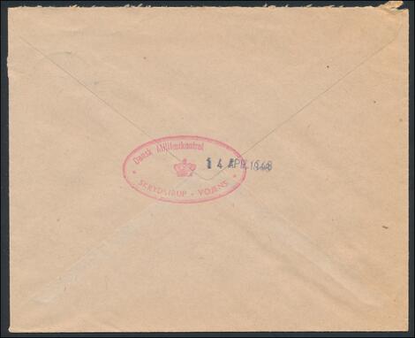 1948. Cover from VOJENS to Copenhagen from "Dansk Militærkontrol "SKYDSTRUP VOJENS 14 APR 1948".