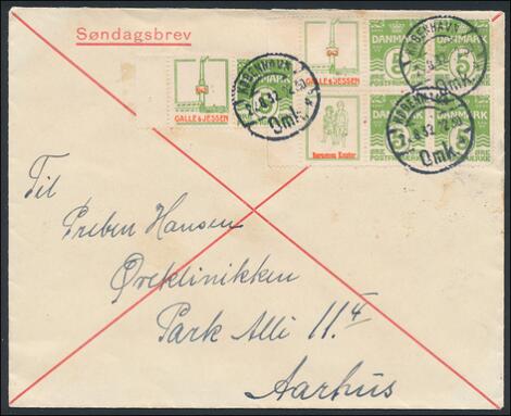 1942. Cover with 20 øre, Chr.X, red with violet line-cancel "Statens Skoleskib Danmark".