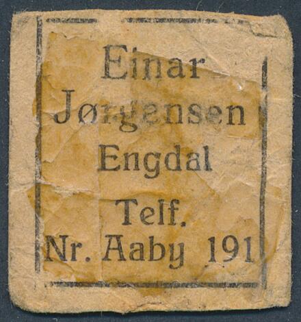 Stampmoney. Einer Jørgensen Engdal. Telf. Nr. Aaby 191, slightly defective