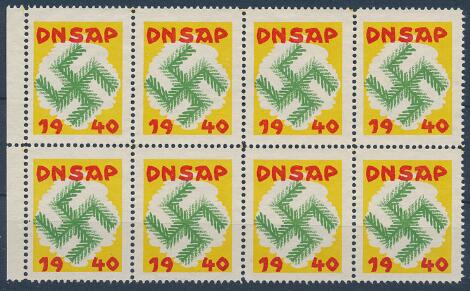 1940. Christmas. D.N.S.A.P. Unused block of 8 without gum. Very rare in units!