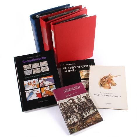 RECEIPT-ENVELOPES. Collection in 3 albums + 4 books litterature.