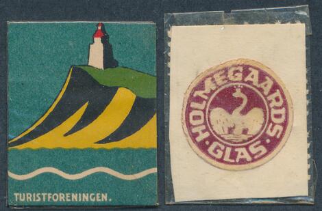 FRIMÆRKEPENGE. 2 stk. Holmegaards Glas og Turistforeningen (Hundested). Ex. Jørgen Sømod.