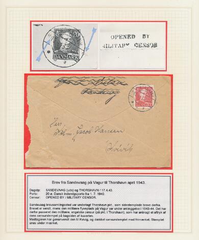 Færøerne. 1943-1944. Lot med 2 interene breve og 2 breve sendt til Færøerne med forskellig censur. Interessant materiale. Ex. Menne Larsen