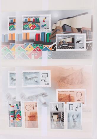 Grønland. 1938-2017. Kæmpe lagerparti i 7 tykke 64 siders indstiksbøger med mærker i varierende antal. Tilsyneladende komplet i perioden 1975-2016. Se foto's
