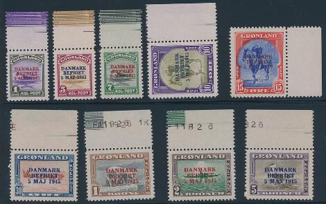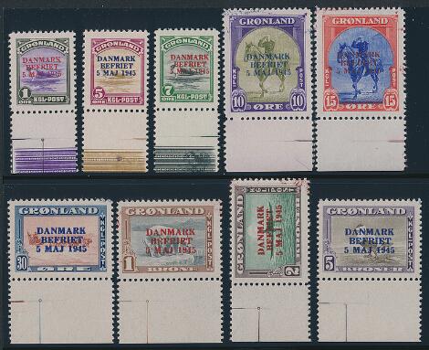 1945. Danmark Befriet. Complete NH set. All values with part og sheet margin