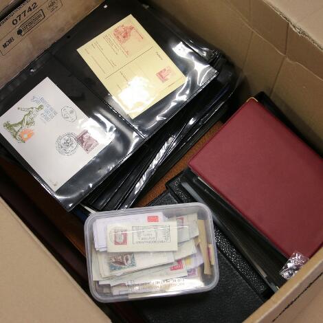 Østrig. Parti i flyttekasse med flere tykke indstiksbøger med masser af materiale samt samling FDC i flere små albums m.m.