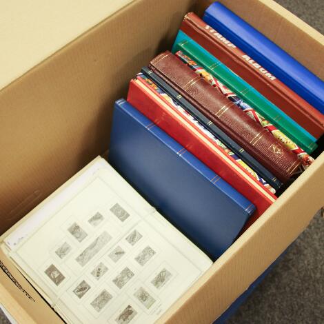 Hele Verden. Parti i kasse med bl.a. samling engelske kolonier, lagerbøger, motiv-samlinger m.v.