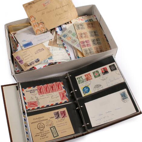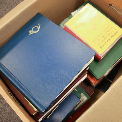 Flyttekasse. Parti i flyttekasse med flere indstiksbøger med bl.a. en del Tyskland, 2 store kartotekskasser med breve fra DDR og meget andet.