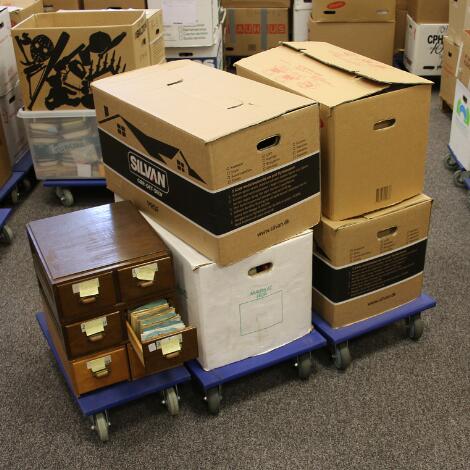 Hele Verden. Parti i 2 flyttekasser med bl.a. meget kartotekmateriale, album, æsker og meget andet.