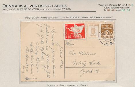 1933. Alfred Benzon Spiseolie (AB). Pair on comm. postcard. Very unusual