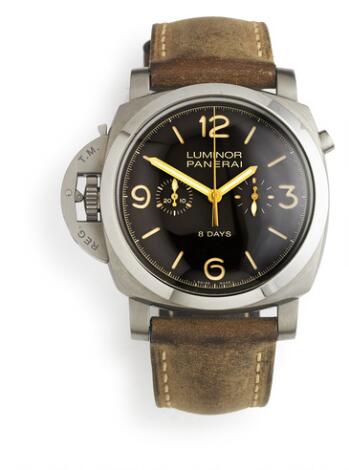 Panerai: A gentleman's wristwatch of titanium. Model Luminor 1950 PAM579 Chrono Monopulsante Destro 8 Days "Left handed", PAM 579. 2015.