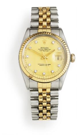 Rolex: A gentleman's wristwatch of gold and steel. Model DateJust, ref. 16013. Chronometer certified automatic movement with date. Circa 1984.