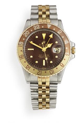 Rolex: A gentleman's wristwatch of gold and steel. Model GMT-Master, ref. 1675. Chronometer certified automatic movement. Circa 1975.