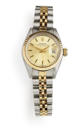 Rolex: A lady's wristwatch of gold and steel. Model Oyster Perpetual Date, ref. 6917. Automatic movement with date. Circa 1980