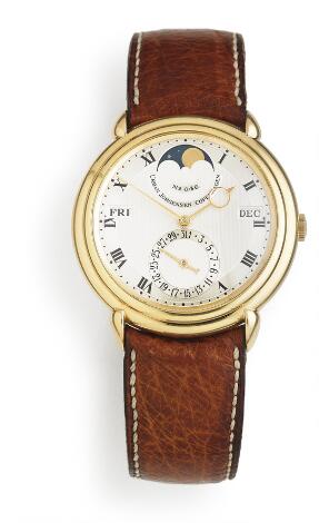 Urban Jürgensen: A gentleman's wristwatch of 18k gold. Ref. 2. Automatic movement with perpetual calendar and moon phase. 1990s.