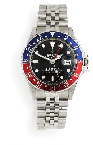 Rolex: A gentleman's wristwatch of steel. Model GMT-Master, ref. 1675. Chronometer certified automatic movement with date and GMT. 1968.