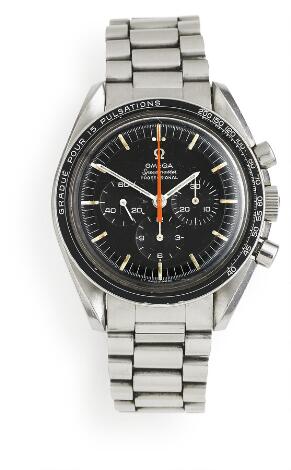 Omega: A gentleman's wristwatch of steel. Model Speedmaster "Ultraman", ref. 145.012-67 SP. Mechanical chronograph movement with manual winding. 1968.
