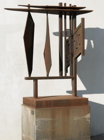 Robert Jacobsen: "Les gémeaux". Svejset sign. R.J. 92. Skulptur af jern opstillet på sokkel af granit. H. 195 L. 150 D. 73