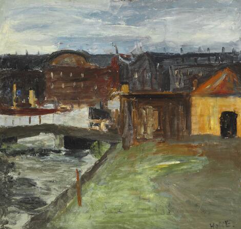 Erik Hoppe: Wilders Plads, Christianshavn, Copenhagen, 1936. Signed Hoppe. Oil on canvas. 100 x 105 cm.