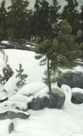 Pekka Halonen: Winter landscape. Signed P. Halonen 1900. Oil on canvas. 88 x 55 cm.