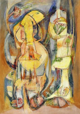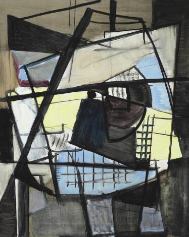 Gina Pellón: "Sorti sans issue", Paris 1973. Sign. G. Pellon; sign., dateret samt med titel på bagsiden. Olie på lærred. 116 x 89.