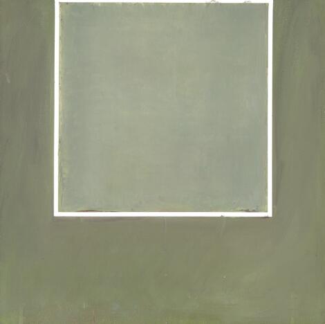 Jake Berthot: "Reach #5", 1972. Sign., betitlet og dateret på bagsiden. Olie på lærred monteret på træ. 51 x 51. Uindrammet.