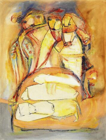Gina Pellón: "Because I Love". Sign. G. Pellon; sign., dateret samt med titel på bagsiden. Olie på lærred. 116 x 81.