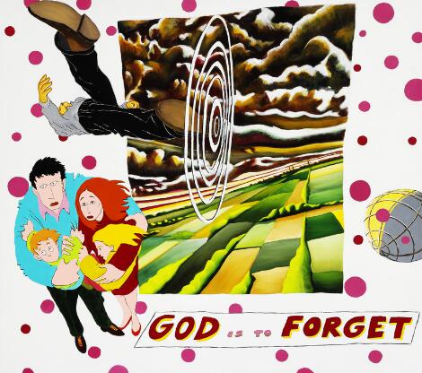 Martin Bigum: "God is to forget" fra serien "Heartland", 1991. Sign. på bagsiden Martin Bigum juli 91. Akryl på lærred. 160 x 180. Uindrammet.