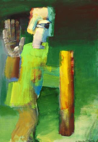 Arne Haugen Sørensen: Vandringsmand. Sign. A. Haugen Sørensen 05. Olie på lærred. 116 x 81.