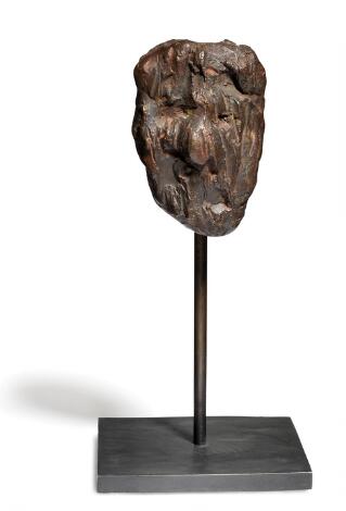 Günther Förg: Lille maske monteret på stang/base af bronze, ca. 1990. Sign. Förg, 6/25. Patineret bronze. H. 12. Inkl. montering H. 26.
