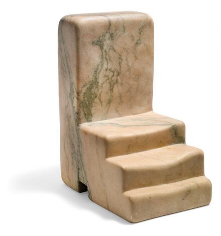 Poul Isbak: Stol. Sign. P.I. 10. Skulptur af rosa marmor. H. 50. B. 37. D. 38.