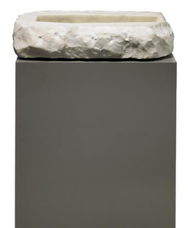Christian Lemmerz: "Taufstein", 2008. Marmor. 67 x 40 x 15. Opstillet på gråmalet sokkel. H. 90