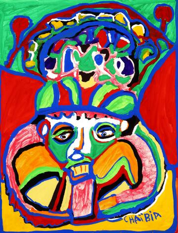 Tallal Chaïbia: "La femme Casablancaise", 1980. Sign. Chaïbia; titel og årstal på bagsiden. Gouache på papir. Bladstørrelse 65 x 50.