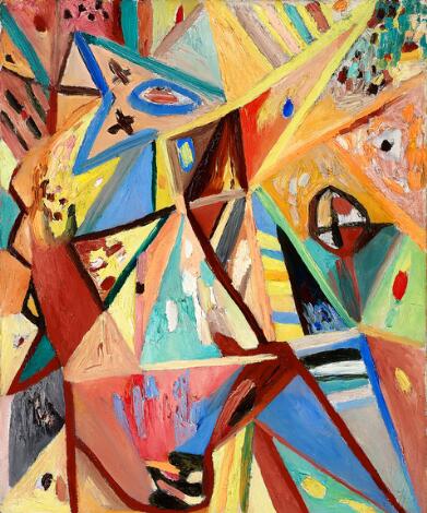 Mehmed Melih Devrim Nejad: "Formes Chinois". Sign. Néjad Paris 62 samt på bagsiden med titel og årstal. Olie på lærred. 60 x 72.