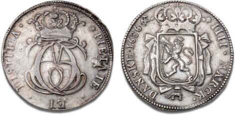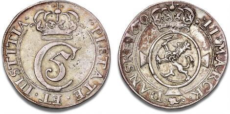 901/204Sølvafslag af 3 dukat 1673, Christiania, NMD 4C, H 10, S 3a
