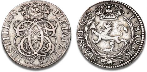 901/220Kronerigsdaler / 6 mark 1704, København, NMD 1B, H 38, S 9, Dav. 1289