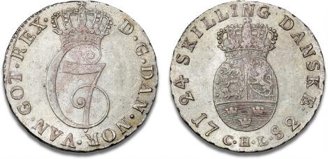901/17824 skilling 1782 CHL, Altona, H 28A, S 3, FP 24 - usædvanlig smukt eksemplar af dette sjældne årstal